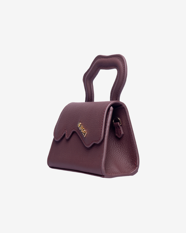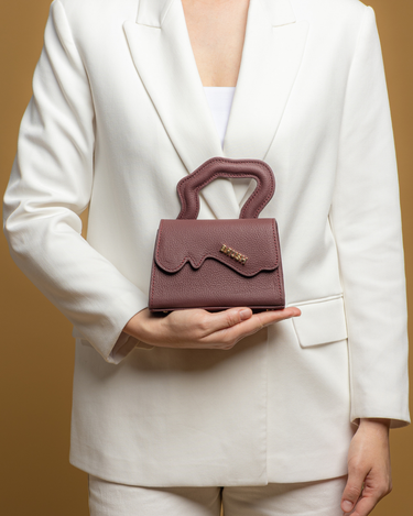 Geanta de piele "Baby Leak", burgundy este versiunea mini a modelului nostru signature Leak Bag, pastrand aceeasi silueta iconica cu clapeta ondulata si maner sculptural. Realizata din piele 100% naturala, este accesorizata cu elemente metalice aurii BRUSH si vine cu bretea detasabila pentru purtare crossbody.