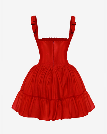 Rochia corset mini red lace, este o piesa vestimentara ce imbina structuralitatea corsetului cu un aer frenetic. Designul sau unic include un corset mulat cu decolteu drept adanc ce accentueaza talia si ofera volum fustei, in timp ce balenele ofera suport. Detaliile de dantela rosie si accesoriile metalice in nuanta gun metal adauga un plus de rafinament si nostalgie.