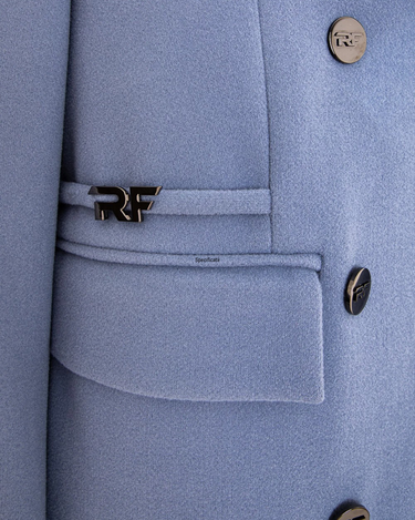 Palton lung albastru cu nasturi si detalii metalice