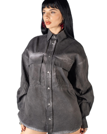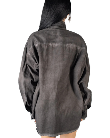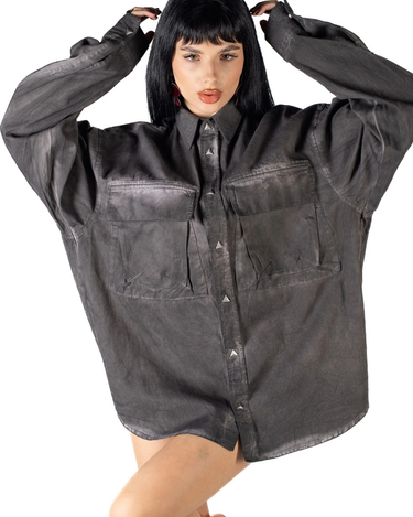 Camasa unisex oversized, dust, aduce un aer urban si relaxat oricarei tinute. Confectionata din bumbac vopsit si tratat pentru un efect washed, are crapaturi subtile care ii confera un look uzat, dar durabil. Poate fi purtata ca piesa de sine statatoare sau ca strat exterior versatil.