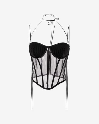 Corsetul Venus, negru, este definitia rafinamentului, realizat din satin de matase cu detalii din tulle transparent si cusaturi fine. O piesa couture care aduce un echilibru perfect intre eleganta si seductie, fiind ideala atat pentru tinute de seara, cat si pentru lookuri rafinate de zi.