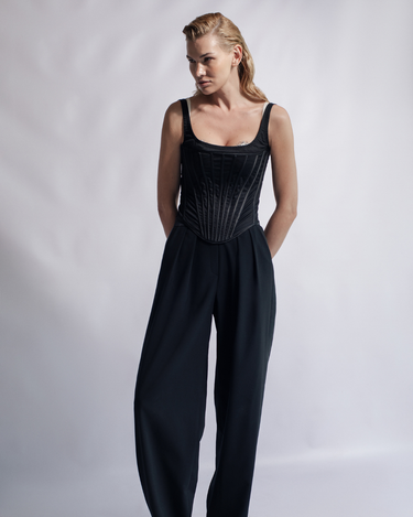 Corsetul Victoria din bumbac, negru, este o reinterpretare moderna a corsetului victorian, perfect pentru tinute feminine si contemporane. Realizat din bumbac elastic cu detalii satinate, are decolteu patrat si o structura cu baleine care contureaza frumos silueta. Este ideal atat pentru zi, cat si pentru seara.