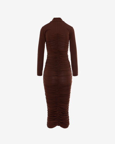Rochia kelly, maro, este o piesa vestimentara ce imbina simplitatea cu eleganta moderna. Croiala creponata se muleaza pe corp, evidentiind silueta, iar manecile lungi adauga un plus de rafinament. Materialul elastic asigura confort si libertate de miscare, facand aceasta rochie potrivita pentru diverse ocazii.