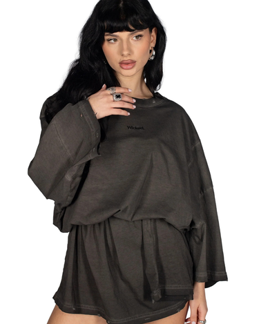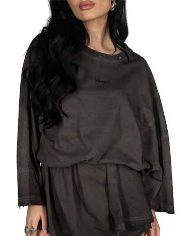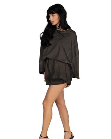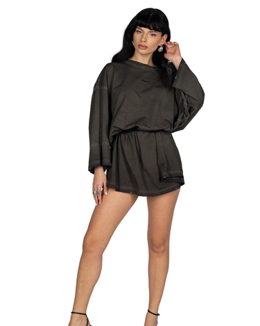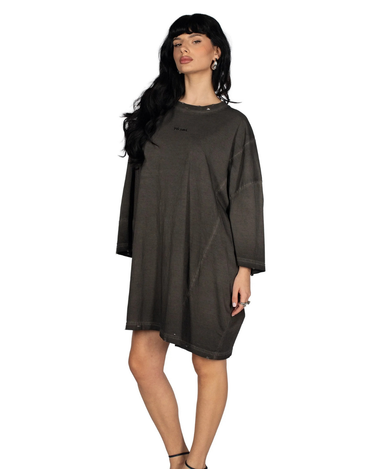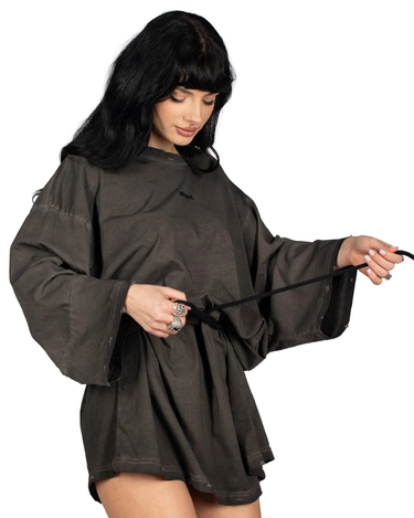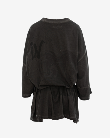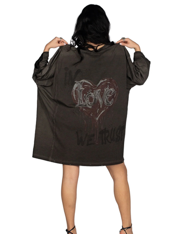 Tricoul tip rochie Love, gri imbina estetica streetwear cu expresivitatea artistica intr-o silueta oversized si versatila. Grafica „IN LOVE WE TRUST” si detaliile raw ii ofera un aer rebel, in timp ce cordonul interior permite ajustarea tinutei pentru un look mai feminin sau relaxat.