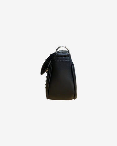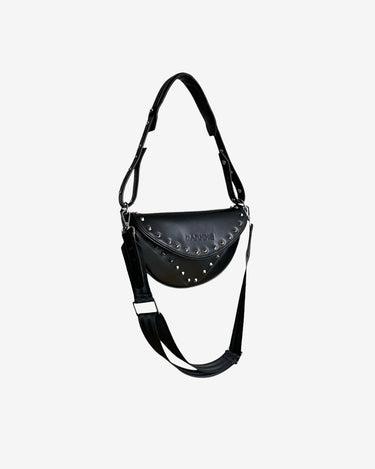 Borseta de piele "Moon", neagra, este un accesoriu versatil si elegant, perfect pentru a completa orice tinuta. Designul sau multifunctional permite adaptarea la diverse stiluri si personalitati. Borseta dispune de doua curele: una scurta din piele pentru a fi purtata ca geanta de mana si una lunga, reglabila, realizata dintr-o combinatie de piele si bumbac, oferind flexibilitate in purtare. Dimensiunile sale compacte si designul modern o fac ideala pentru utilizarea zilnica sau pentru evenimente speciale.