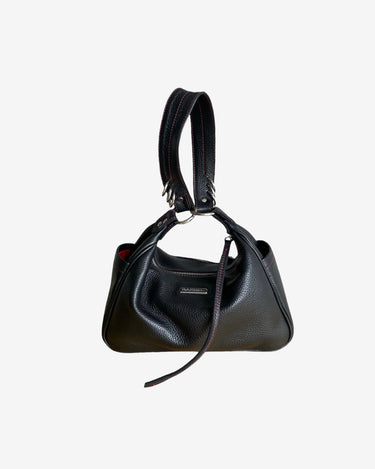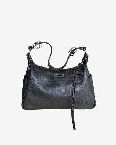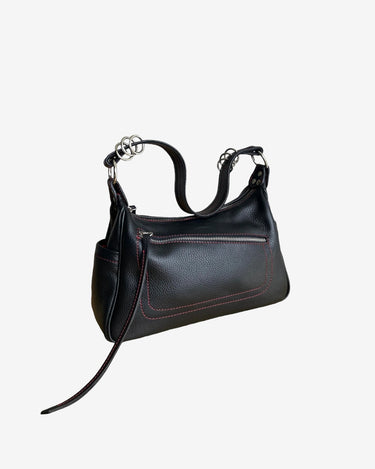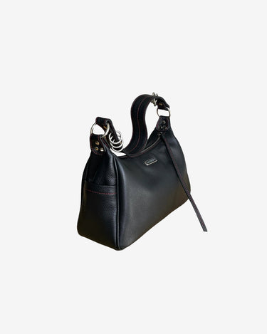 Geanta de piele "City Rush", neagra, este un accesoriu versatil si practic, ideal pentru utilizarea zilnica. Designul sau minimalist este completat de o bretea perforata, oferind posibilitatea de a atasa diverse accesorii. Dimensiunile compacte o fac potrivita pentru a transporta obiectele esentiale, fara a compromite stilul.