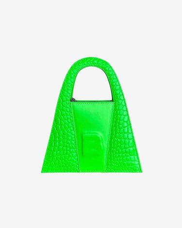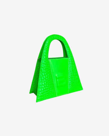 Geanta Mini de Piele "Lock", Verde Neon Croc