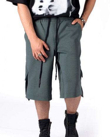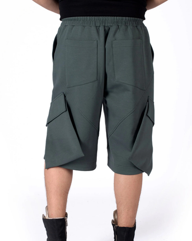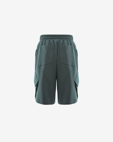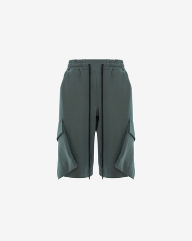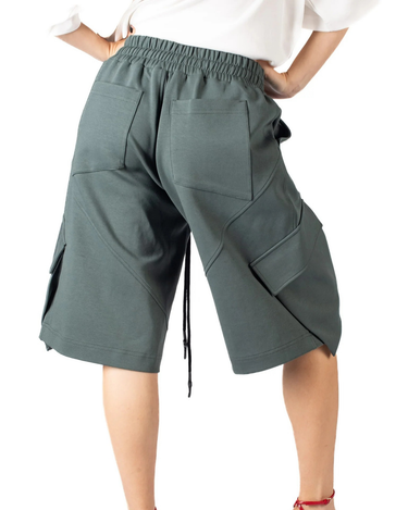 Pantalonii scurti Fold, verde inchis aduc un aer utilitar reinterpretat intr-o forma oversized si functionala. Realizati din bumbac de greutate medie, acestia combina confortul cu un look urban, accentuat de buzunarele mari si snururile contrastante.