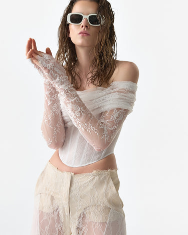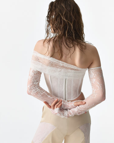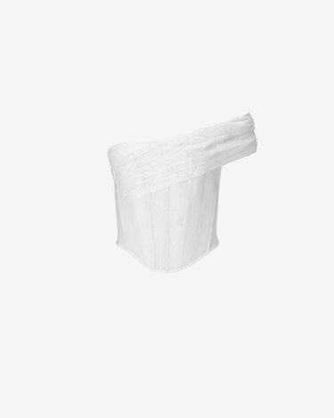 Corset din Dantela cu Drapaj Asimetric, Alb