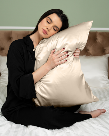 Fata de perna din matase bej iti ofera o experienta de somn luxoasa si beneficii pentru frumusete. Materialul fin previne ridurile, mentine hidratarea pielii si protejeaza parul de rupere. Alegand aceasta fata de perna, investesti in confort si ingrijire personala, bucurandu-te de un somn odihnitor.