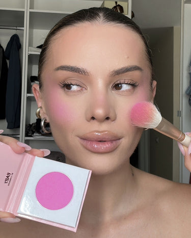 Blush pudra, roz cu irizatii fine luminoase, adauga un strop de culoare si stralucire naturala obrajilor. Formula sa pigmentata ofera o intensitate controlabila, permitand crearea unui look subtil sau mai dramatic. Textura sa matasoasa se difuzeaza usor, fara a pata, asigurand un finisaj uniform si natural. Pentru o aplicare perfecta, se recomanda utilizarea pensulelor BOMB, GLAMMED SHAPES sau POWDER POWER.