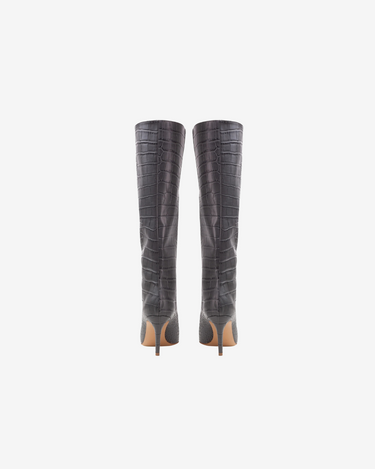 Cizmele din piele embosata Ilona, gri, imbina clasicul cu modernul printr-un design elegant si versatil. Cu varf ascutit si calapod comod, sunt create pentru a se potrivi usor oricarei tinute, fie purtate peste pantaloni, fie cu ciorapi. Pielea embosata in nuanta gri deschis adauga un aer urban si sofisticat.