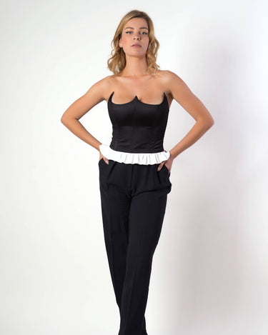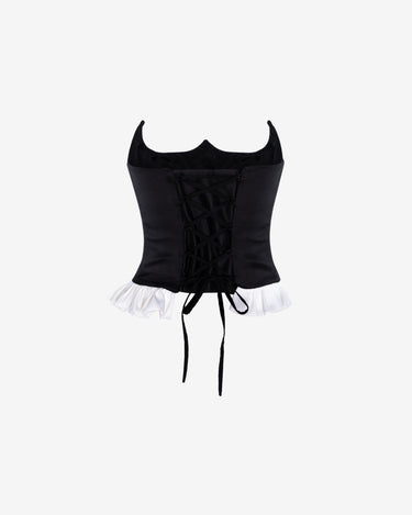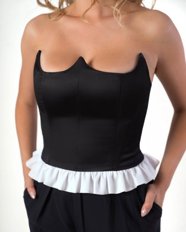 Corset-ul snnobish, negru, este o piesa vestimentara ce subliniaza silueta, oferind un aspect sofisticat si seducator. Designul sau unic include un decolteu inima inversat, creat pentru a ridica si a pune in valoare bustul. Inchiderea cu siret la spate permite ajustarea perfecta, asigurand confort si suport. Acest corset este ideal pentru evenimente speciale sau pentru a adauga o nota de eleganta tinutelor de seara.