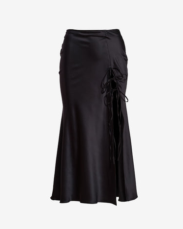Fusta Midi din Satin Carmen, Neagra, este o piesa vestimentara eleganta si sofisticata, ideala pentru orice ocazie speciala. Designul midi, combinat cu fanta si snurul din satin, ofera un look feminin si seducator. Materialul de inalta calitate, 100% matase naturala, asigura confort si un aspect luxos.