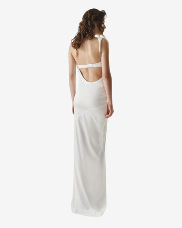 Rochia drapata pana in talie, ivory, este o piesa vestimentara eleganta, ideala pentru evenimente speciale. Designul sau lung din satin, talia drapata si decolteul adanc, impreuna cu bretelele spaghetti, confera un aer sofisticat. Spatele decupat adauga un plus de senzualitate. Topul bustiera rasucit inclus completeaza perfect tinuta.