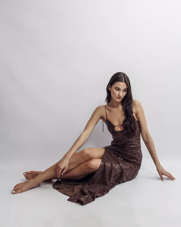 Rochie Maxi din Paiete "Luna", Maro