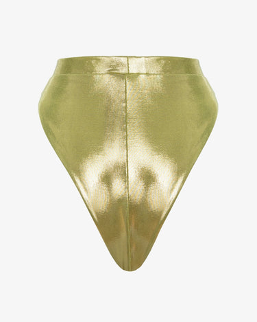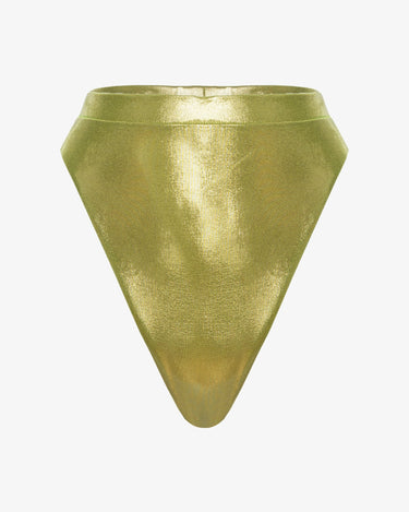 Combinat cu topul bralette din colectie, acest slip este alegerea ideala pentru un look de plaja care nu trece neobservat. Metallic Green, un verde metalic care va atrage toate privirile si va adauga un strop de glamour oricarei vacante de vara.