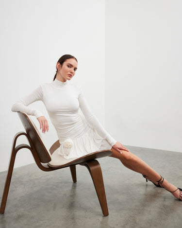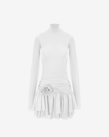 Rochia mini Silene este ideala pentru cine romantice, fiind confectionata din jerseu elastic. Aplicul de trandafir realizat manual, asimetric, adauga o nota jucausa si artistica, transformand-o intr-o piesa deosebita in garderoba ta. Aceasta rochie te va face sa te simti speciala si admirata.