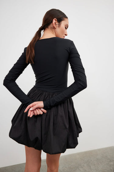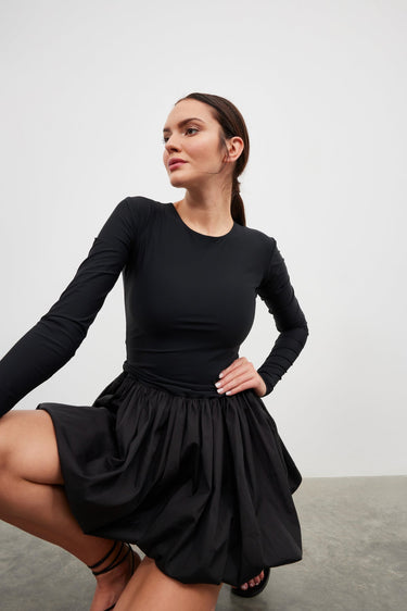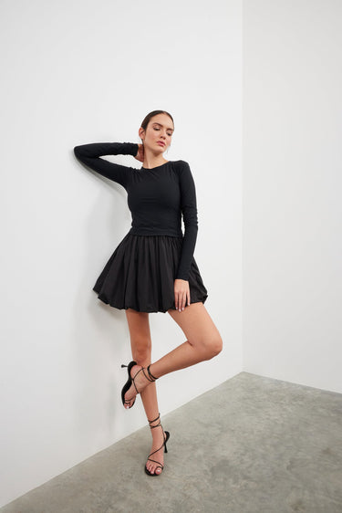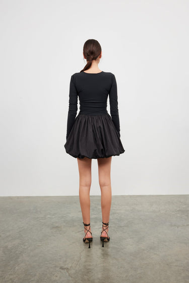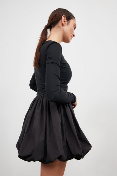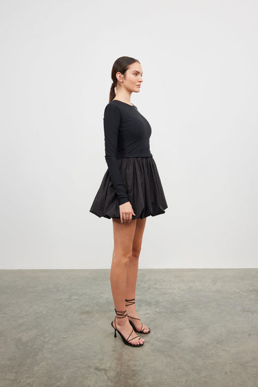 Transforma-ti look-ul din simplu in demn de podium cu rochia noastra mini Clara. Realizata din poplin usor, imbina eleganta cu un dramatism jucaus prin gulerul inalt si fusta tip balon. Corsetul mulat si manecile lungi creeaza o silueta impresionanta, iar tivul tip balon adauga o nota de fantezie.