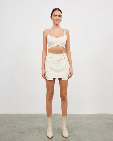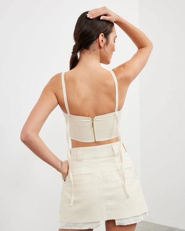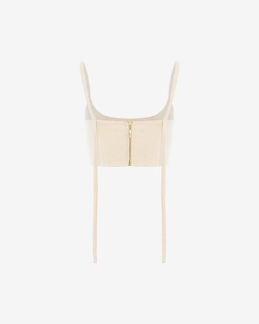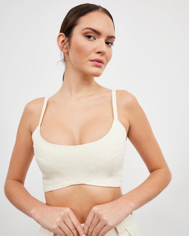 Topul bralette Mia este o piesa chic, scurta, realizata din bumbac organic. Ofera o silueta moderna si rafinata, perfecta pentru cei care isi doresc un look indraznet in stilul tailoring. Acest design versatil este ideal pentru a fi purtat in straturi, devenind un must-have in garderoba ta.
