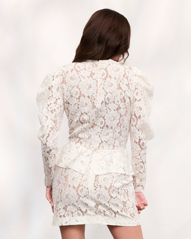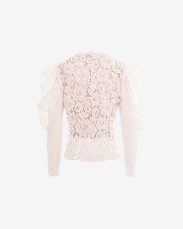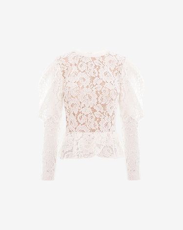 Realizat din dantela de bumbac, topul Anemone are proportii jucause care vor atrage toate privirile. Cu un aer cool parizian, acest top alb este definit de umeri bufanti, maneci lungi stramte si un tiv tip peplum realizat prin suprapunere.