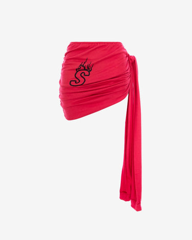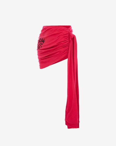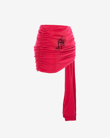 Fusta mini rosie este piesa vestimentara ideala pentru un look indraznet si modern. Croiala bodycon iti pune in valoare silueta, iar manecile lungi laterale adauga un plus de originalitate. Imprimeul cu logo frontal completeaza designul urban al fustei.