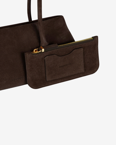 • Interior: 1 large compartment, 1 zip pocket stamped with “Maestoso” logo, 1 card pocket.