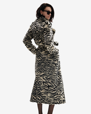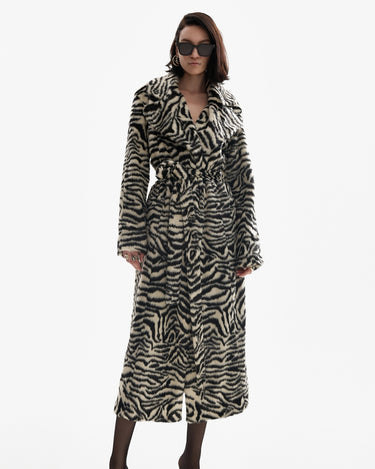 Long faux fur coat in zebra print