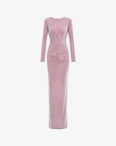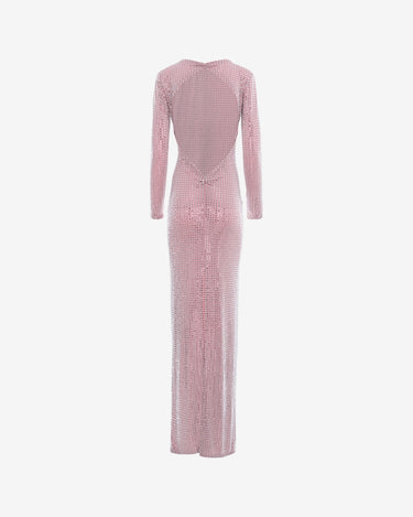 The Elisabeth long dress, pink, is a spectacular piece that combines refinement with femininity. Made of a fine and fluid fabric, decorated with delicate crystals, the dress subtly attracts attention through the discreet play of light. The bare back is elegantly balanced by the long sleeves, offering a memorable and sophisticated look.