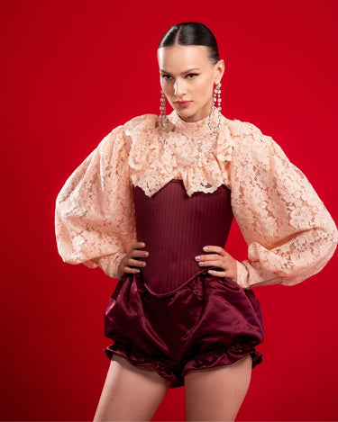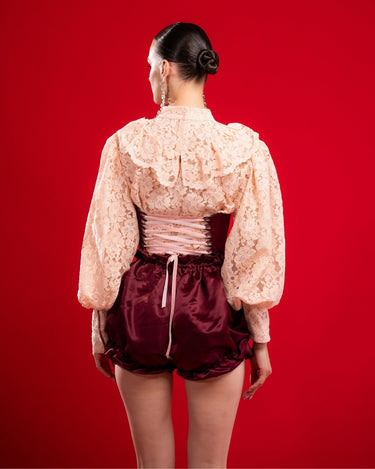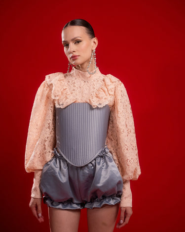 •Double sided corsets are definitely representative for our brand identity A statement item that can be reused and repurposed endlessly. By having two sides yo can style it in different ways. One is created from lime tafeta and the other one pink tafeta.