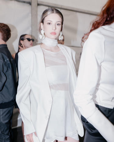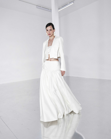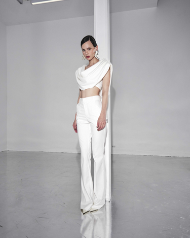 • High-neck blouse with stretch fabric and an oversized bow-shaped extension.