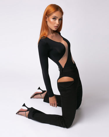 Retro Jeans with Side Split, Black