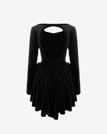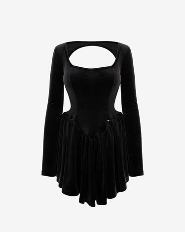 The Velvet Rose black velvet dress adds a touch of sophistication to your wardrobe, combining classic elegance with a modern design. The structured bodice and exaggerated hips highlight the waist, while the pleated skirt adds movement and fluidity. The detachable velvet flower accessory turns the dress into a versatile piece, perfect for special occasions.