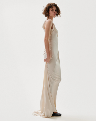- Cut: fitted, maxi, with twisted detail and fishtail slit