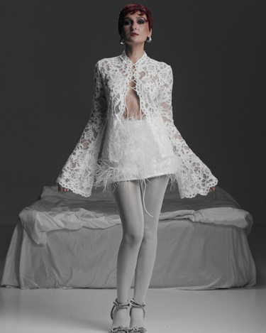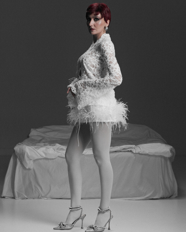 The Blankie red velvet mini skirt combines elegance with a modern and sophisticated style. Made from a soft and stretchy velvet, it molds to the silhouette, highlighting the waist with its asymmetrical cut and refined draping. The wide elastic at the waist offers comfort and support, and the gun-metal RF accessory adds a distinctive detail.