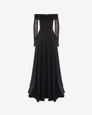 Timeless Sparkle Black Evening Dress with Gloves