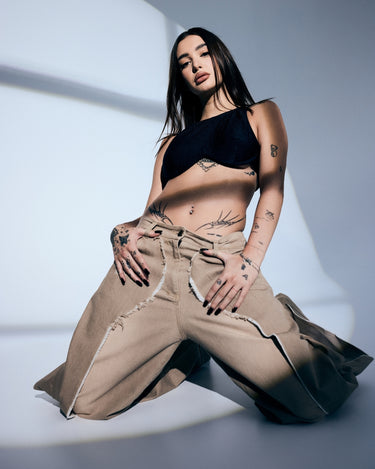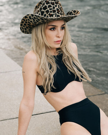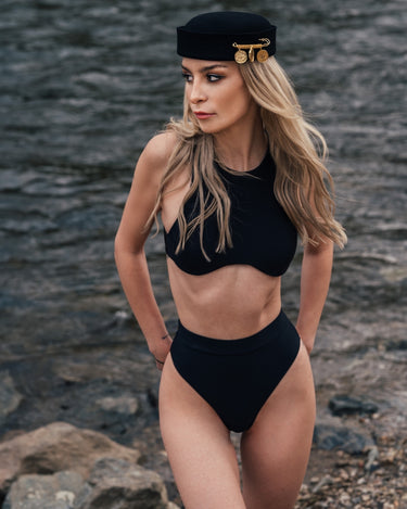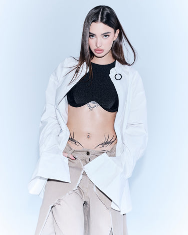 • The medusa top has a zip tie in the back and underwire cups for volume boost.