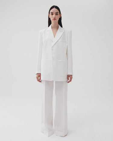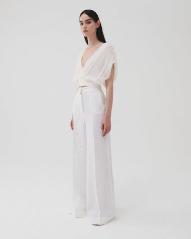 The Riviera linen trousers are the essential piece for an elegant and comfortable look on warm days. With a loose design and high waist, this model elongates the silhouette and offers a perfect fit. The natural material allows the skin to breathe, ensuring increased comfort throughout the day.