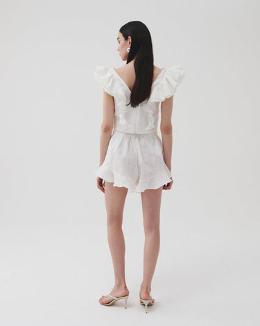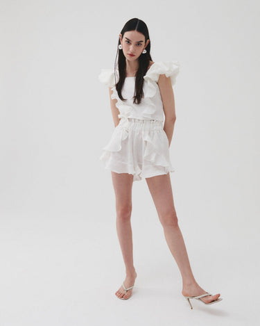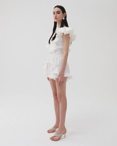 Flirty linen shorts are the perfect choice for hot summer days. Made from natural material, these pants are extremely comfortable and allow the skin to breathe. The ruffled design adds a feminine and playful air, giving you a casual yet elegant look.
