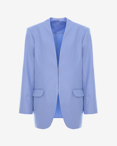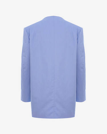 Designed with a minimalist interruption, the Static Bloom jacket subverts the classic suit jacket through its absence: no lapels, no visible structure — just a clean vertical opening that cuts across the front like a line of silent code. The discreet old-fashioned clasp seems more like a forgotten thought, as if the piece were suspended in a loading screen. The flap pockets subtly protrude, evoking traditional tailoring only to fragment it. This piece is not worn — it floats between presence and potential, unfinished like a thought left in draft.