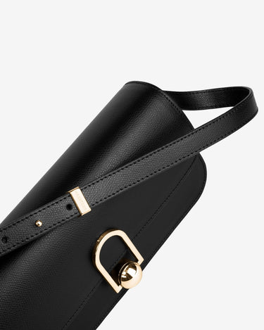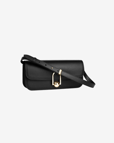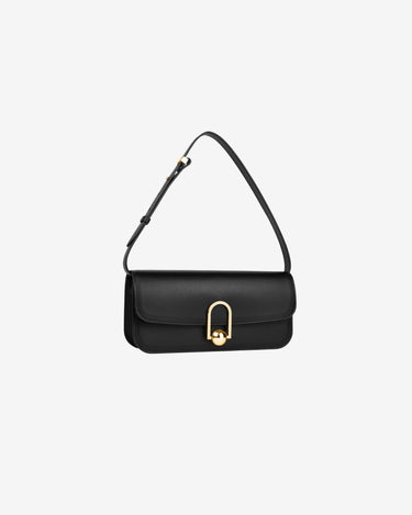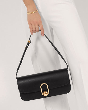 • A perfectly proportioned statement piece, the bag is enhanced with a signature arched lock that reveals the sculptural side of a classic-shaped design. The versatility of this bag is emphasized by the leather shoulder strap that can easily be adjusted in length to wear it as an under-the-arm baguette or detach it to wear it as an elegant party clutch.