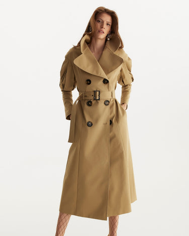 Trench Coat with Pleated Shoulders, Beige