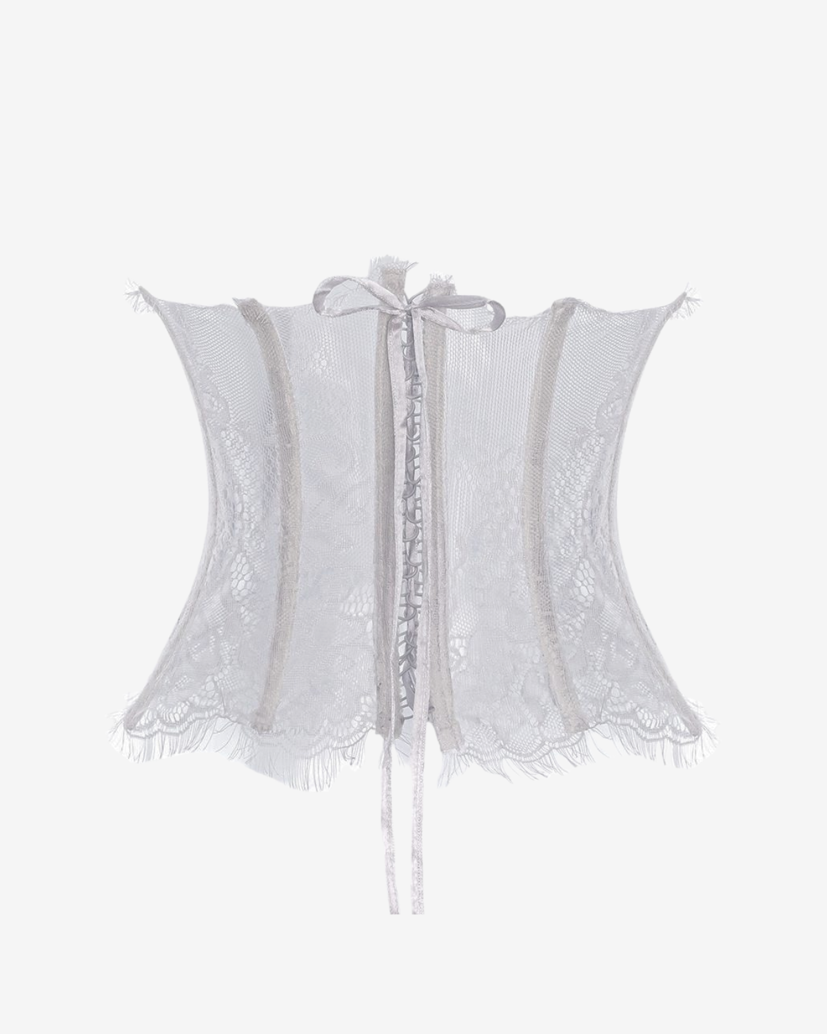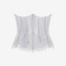 Corsetul "Chantilly" White Swan este o piesa couture ce imbina senzualitatea cu eleganta absoluta. Realizat manual din dantela Chantilly alba, cu balene de sustinere si snur reglabil din satin la spate, accentueaza talia si creeaza o silueta spectaculoasa, perfecta pentru aparitii memorabile si rafinate.