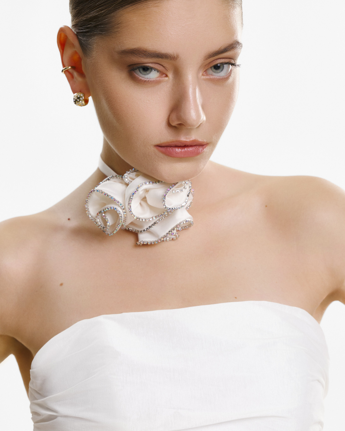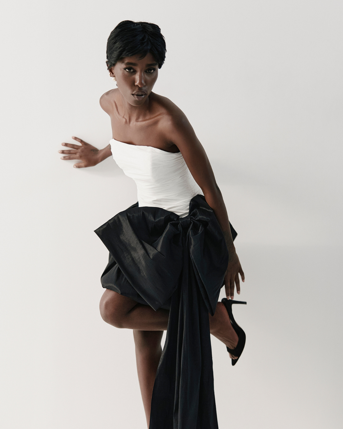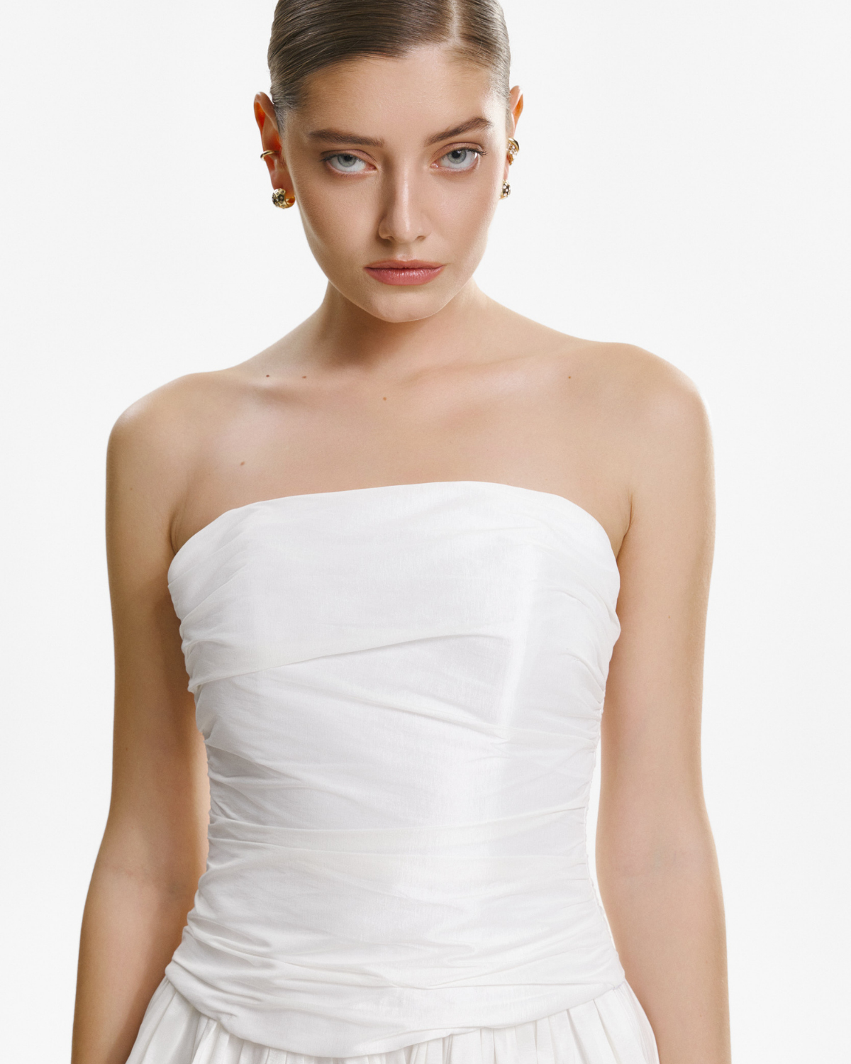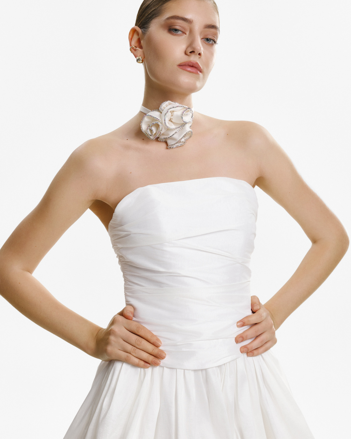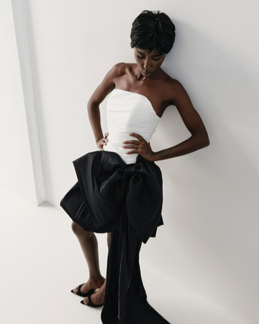 Corset din Tafta cu Esarfa, Alb este o piesa structurata care evidentiaza talia si adauga un aer elegant oricarei tinute. Textura specifica taftalei ofera volum si un usor luciu, iar croiala cambrata contureaza silueta intr-un mod feminin si modern. Funda inclusa completeaza designul si permite stylinguri variate, de la outfituri sofisticate la combinatii statement.