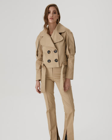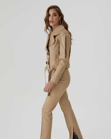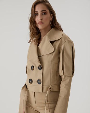 Jacheta Statement cu Revere Largi, Bej