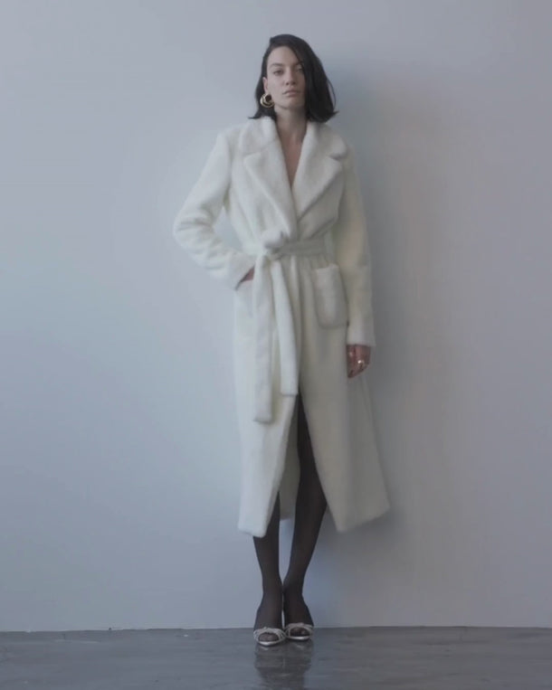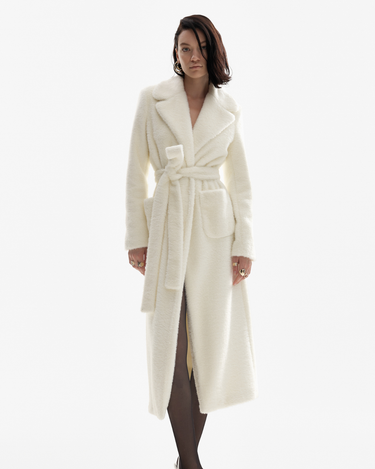 Palton din Blana Sintetica, Alb