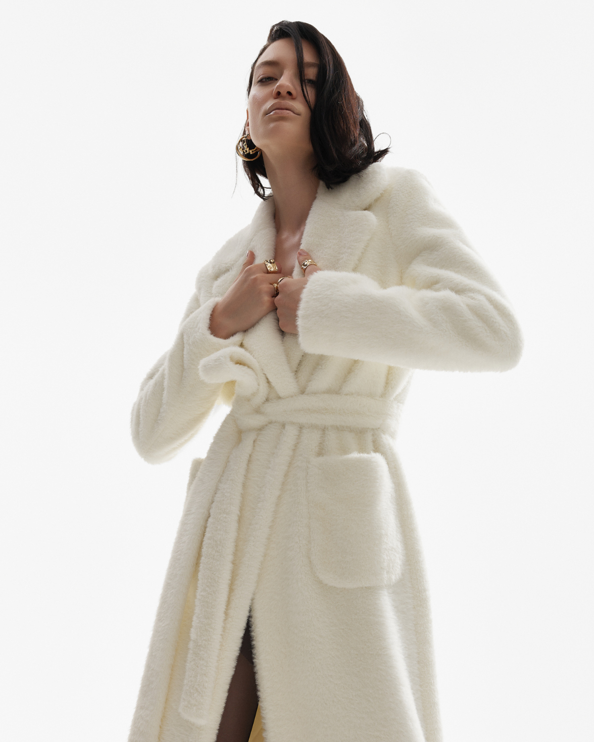 Acest model aduce un aer cinematografic oricarei tinute, fie ca il porti peste o rochie satinata sau peste un look urban simplu. Cordul ajustabil permite definirea taliei, pastrand versatilitatea intre un styling relaxat sau unul mai structurat. Este o piesa menita sa transforme tinutele de zi si de seara intr-un look memorabil.