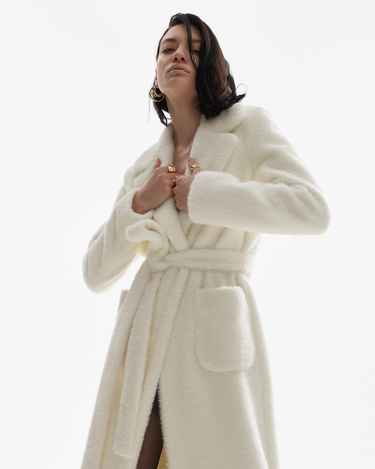 Palton din Blana Sintetica, Alb imbina eleganta clasica cu o estetica moderna si minimalista. Silueta oversized, croiala dreapta si reverele late creeaza o prezenta sofisticata si lejera in acelasi timp. Textura pufoasa a blanii sintetice face ca acest palton sa fie nu doar o piesa statement, ci si una confortabila pentru sezonul rece.