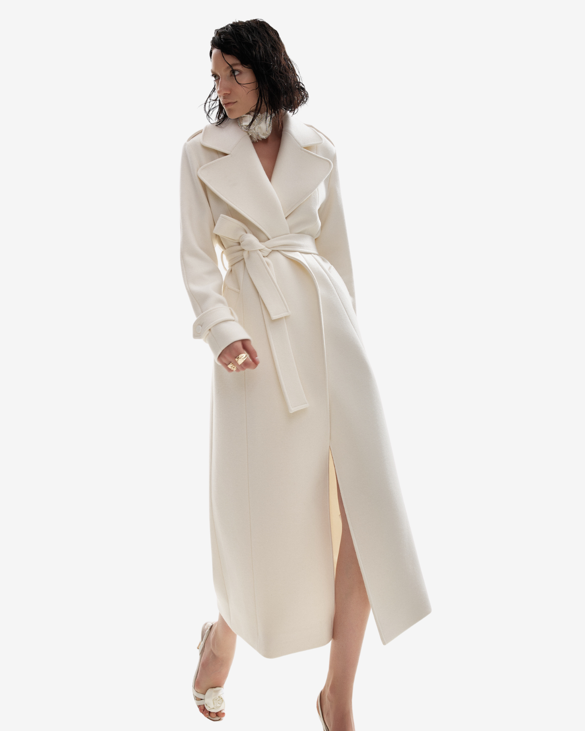 Acest palton este conceput ca o investitie in stil, o piesa clasica pentru garderoba unei femei care apreciaza calitatea si feminitatea atemporala. Aspectul alb imaculat il transforma intr-un statement subtil, iar versatilitatea croiului il face potrivit pentru tinute de zi sau ocazii speciale.