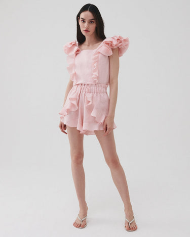 Pantalonii scurti Flirty din in sunt alegerea perfecta pentru zilele calduroase de vara. Realizati din material natural, acesti pantaloni sunt extrem de confortabili si permit pielii sa respire. Designul cu volane adauga un aer feminin si jucaus, oferindu-ti un look lejer, dar elegant in acelasi timp.
